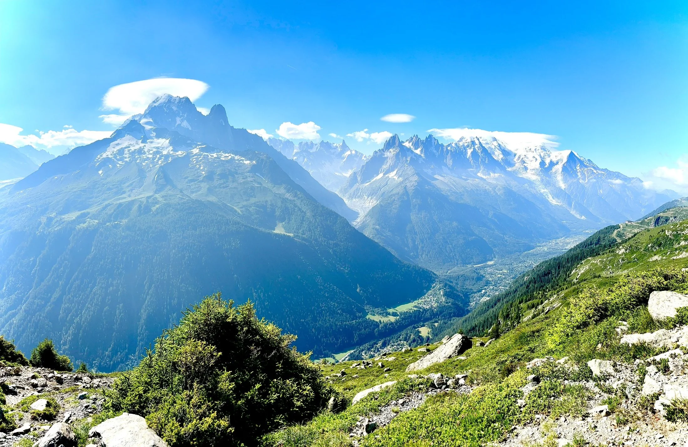 Nous avons décidé de ne pas faire l’Aiguille du Midi, l’une des attractions les plus populaires de Chamonix. On prend cette décision en raison du prix et des foules, mais nous avons aussi considéré que nous avions déjà eu de très belles vues du Mont-Blanc. On pense aussi faire du parapente, mais encore une fois, le prix nous dissuade. Gabriel a déjà eu la chance de faire ces deux activités avec ses parents il y a plusieurs années, mais ce n’est que partie remise pour Valérie!
