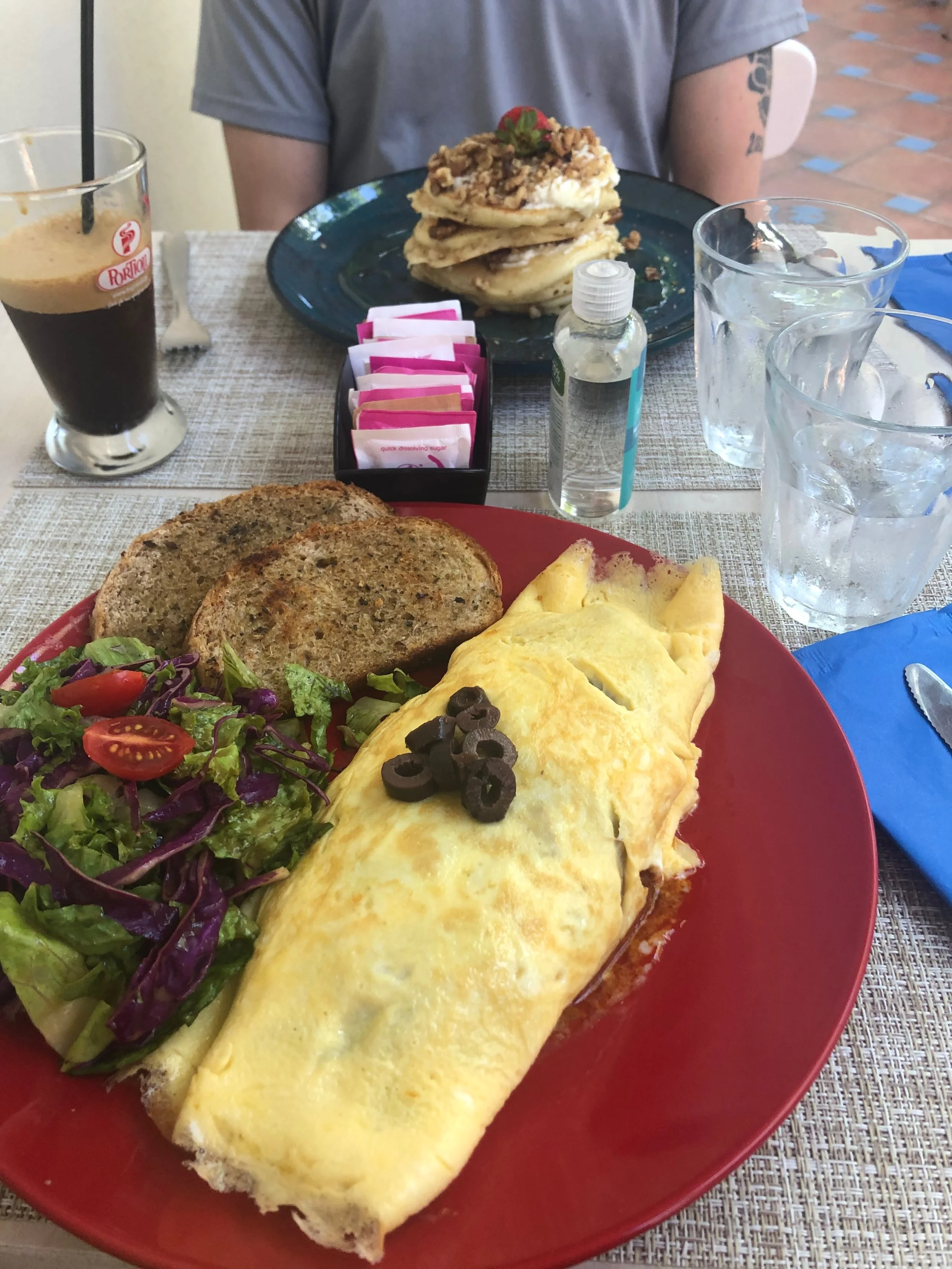 Premièrement, nous avons réservé l’un de nos Airbnb préférés de toute notre vie. L’appartement est non seulement spacieux, complet et propre, mais possède un petit balcon avec vue sur la terrasse du restaurant situé au rez-de-chaussée. Le restaurant est d’ailleurs tenu par la famille qui possède le Airbnb. Nous avons soupé une fois dans ce restaurant et nous avons été légèrement déçus. Par contre, la même famille tient un petit restaurant à déjeuner nommé Adami, qui est tout simplement délicieux. Nous y avons mangé chaque matin.
